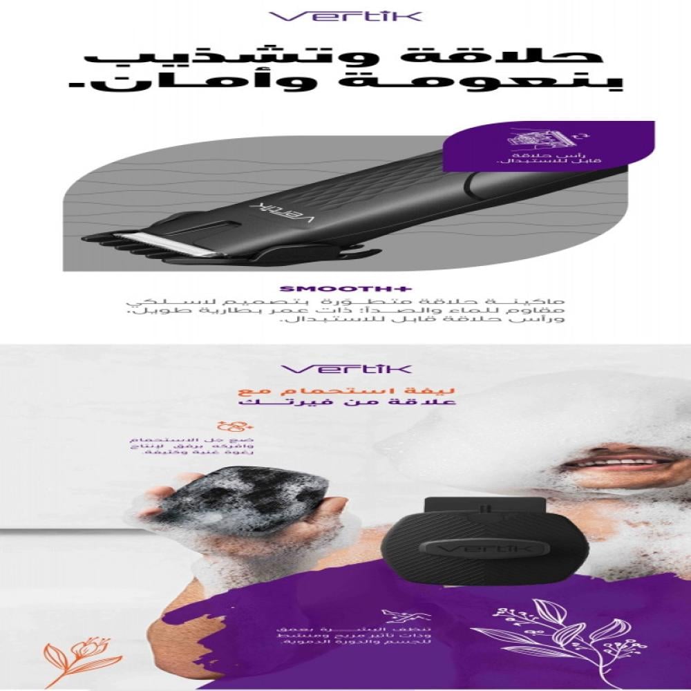 تمنحك ماكينة الحلاقة من فيرتك أداءً ناعمًا وآمنًا بفضل تصميمها الانسيابي ورأسها القابل للتبديل، لتناسب مختلف مناطق الجسم، مع استخدام لاسلكي ومقاومة للماء لتجربة مريحة وعناية متكاملة. تأتيك مع ليفة استحمام بعلاقة للاستخدام اليومي.