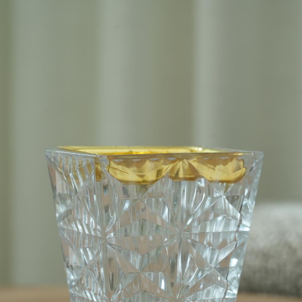 مبخرة زجاج بتصميم عصري باللون الشفاف والذهبي مقاس 22 سم