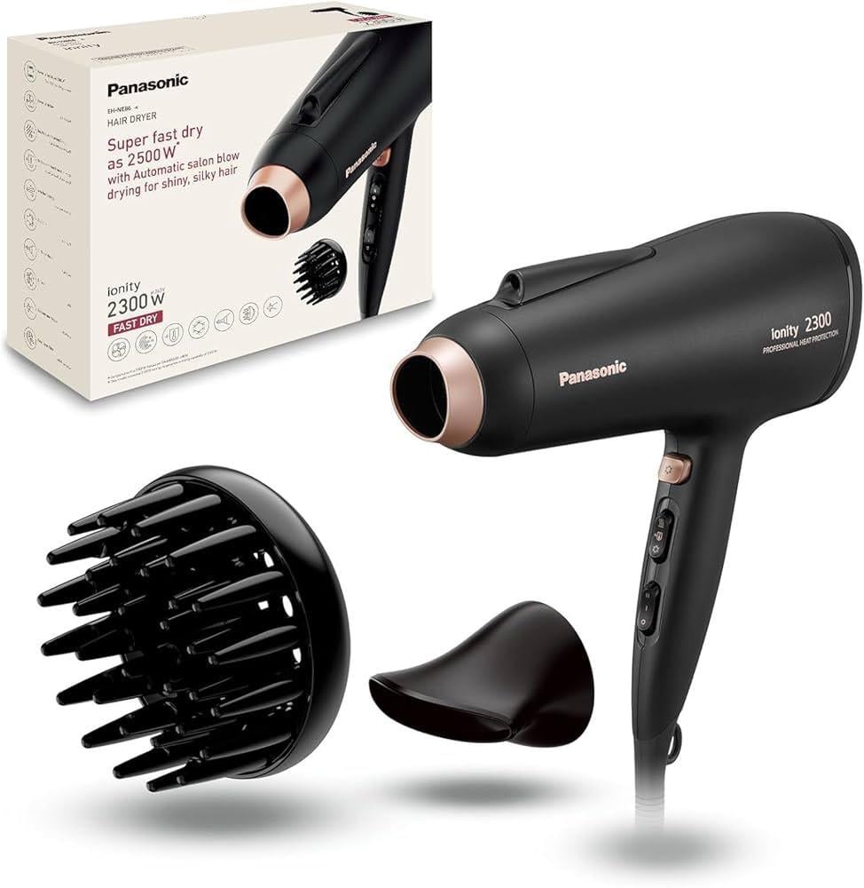 مجفف الشعر باناسونيك مصمم ليمنحك تجفيف سريع دون الإضرار بالشعر، حيث توزع تقنية الأيونات السالبة الرطوبة بالتساوي لتقليل التجعد وزيادة النعومة. يأتي مزودا بفوهتين مختلفتين – فوهة مركزة لتصفيف دقيق، وموزع هواء