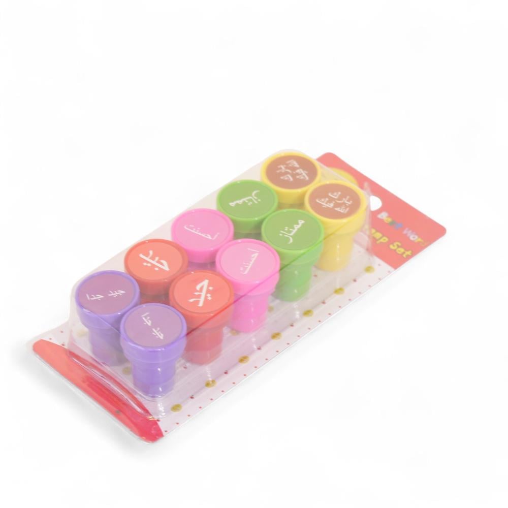 أضف لمسة من المرح والتحفيز مع مجموعة أختام العبارات التشجيعية المميزة. تحتوي على 10 أختام بألوان ورسومات متنوعة تحمل كلمات مشجعة مثل "ممتاز"، "أحسنت"، "بارك الله فيك"، وغيرها. مثالية لاستخدام المعلمين في تصحيح الدفاتر، أو للأهل لتشجيع أطفالهم في المنزل