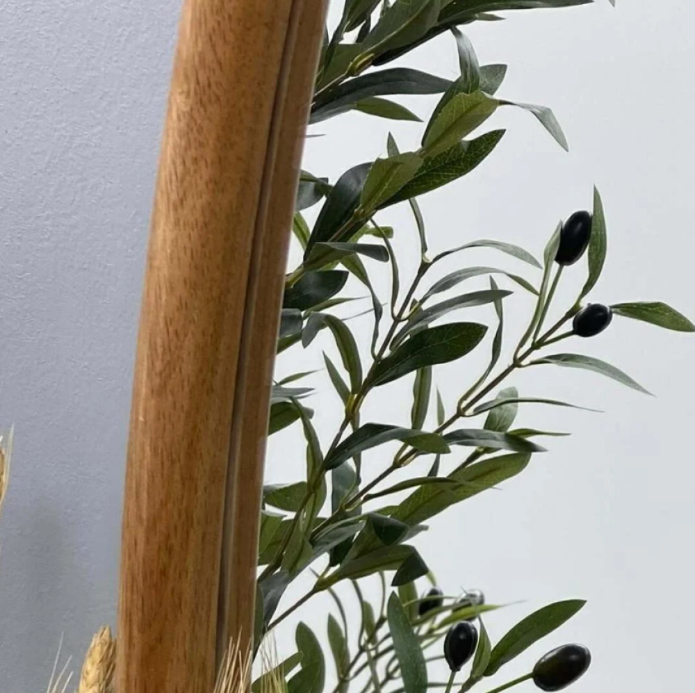 أضف لمسة من الرقي والدفء إلى ديكور منزلك مع هذه المرآة البيضاوية ذات الإطار الخشبي المصنوع بعناية. تصميمها الناعم يضفي انسيابية وجمالًا فريدًا يتناغم مع مختلف أنماط الديكور.