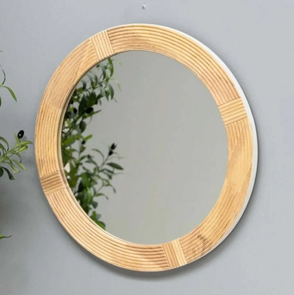 أضف لمسة من البساطة والدفء إلى أي مساحة مع هذه المرآة الدائرية ذات التصميم العصري والإطار الخشبي الطبيعي. تتميز بخطوطها المنسقة التي تمنحها طابعًا فريدًا يناسب مختلف أنماط الديكور سواء كانت عصرية، ريفية أو اسكندنافية.
