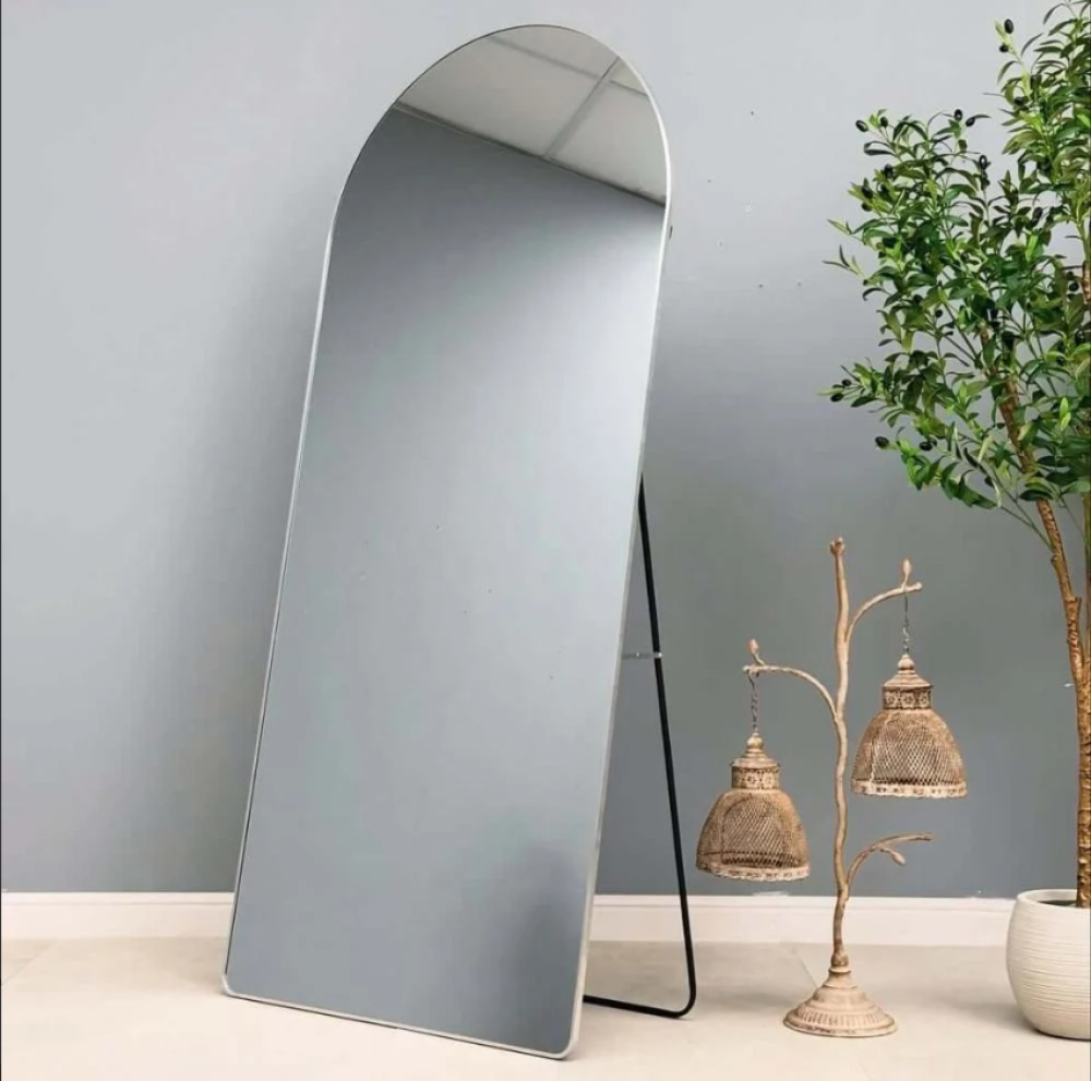 أضف لمسة فخامة وأناقة إلى مساحتك مع هذه المرايا الأرضية ذات التصميم العصري والإطار الفضي اللامع.
