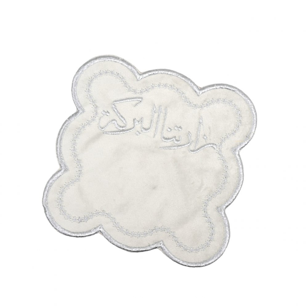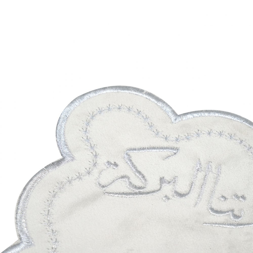 مفرش للطاولة صغير بعبارة (زارتنا البركة ) مطرز باللون الفضي يعطي مظهر ديكورى أنيق للطاولة أمام ضيوفك.
