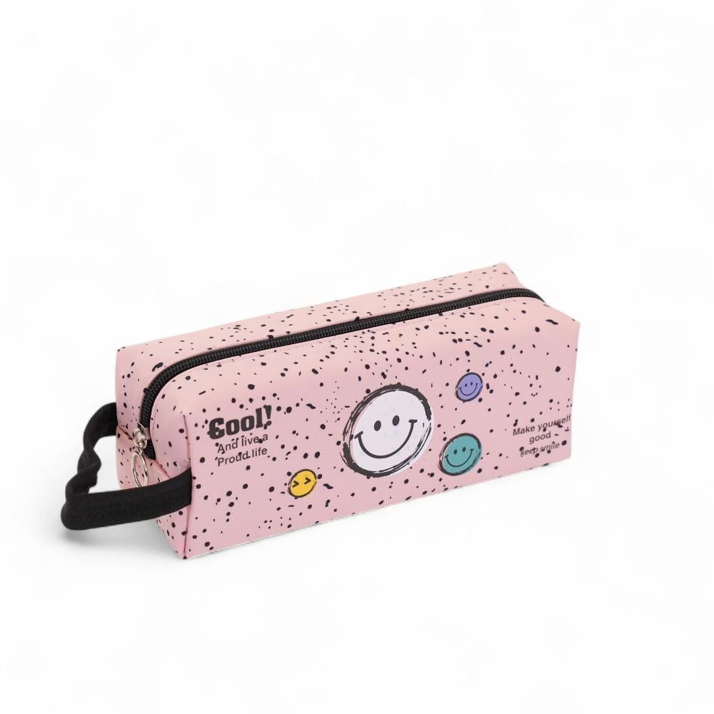استمتعي بترتيب أغراضك مع حافظة أقلام أنيقة للبنات بتصميم وردي وطبعات وجوه مبتسمة تضيف لمسة بهجة لروتينك اليومي تصميمها العملي بسحاب متين يسع أقلامك ومستلزماتك المدرسية ويحافظ عليها منظمة طوال اليوم، خامة متينة وخفيفة الوزن تناسب المدرسة أو الجامعة