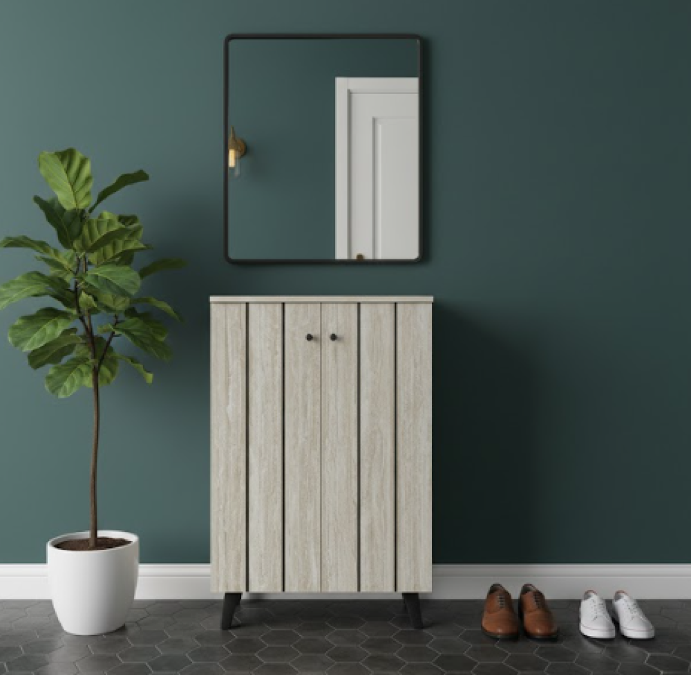 منظم أحذية خشبي بلمسة عصرية، مثالي لترتيب الأحذية والمحافظة على مظهر مرتب في مدخل البيت.