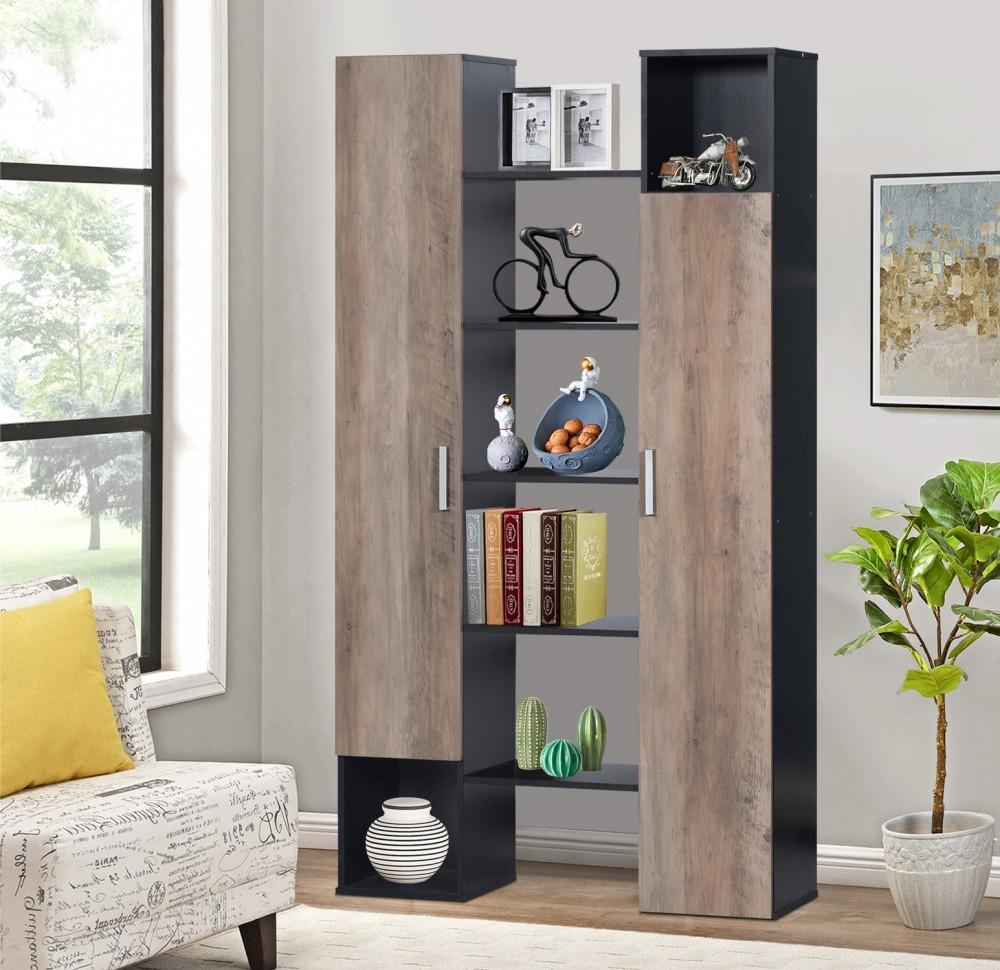 وحدة تخزين بخمسة أرفف عملية مزودة ببابين وأدراج أنيقة باللون الأبيض. تصميم عصري يجمع بين المساحة الكافية للتخزين والشكل الجذاب، لتضيفي لمسة من الترتيب والأناقة إلى منزلك
